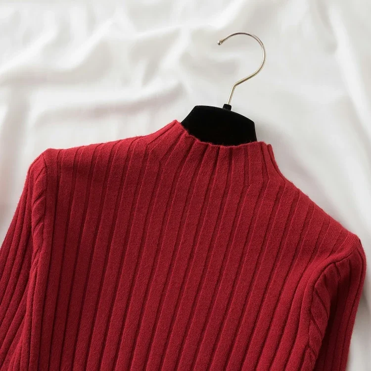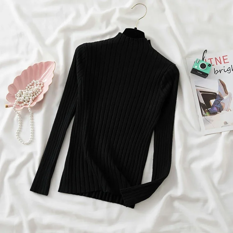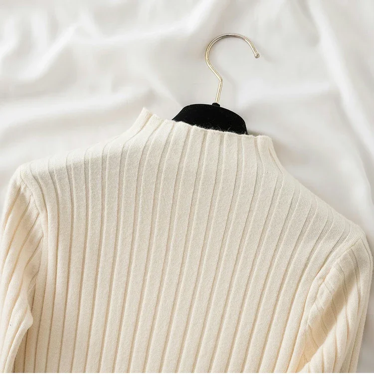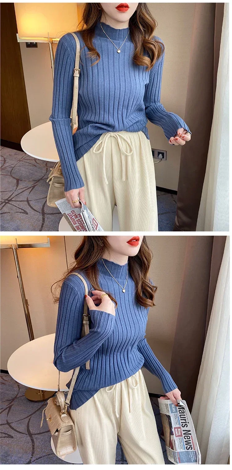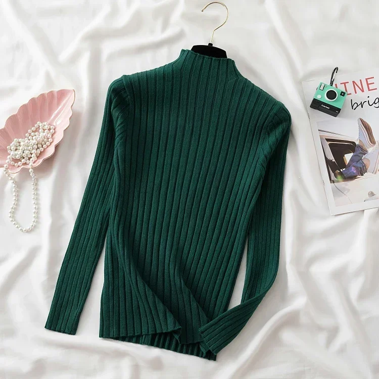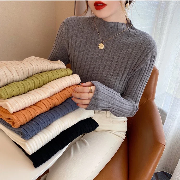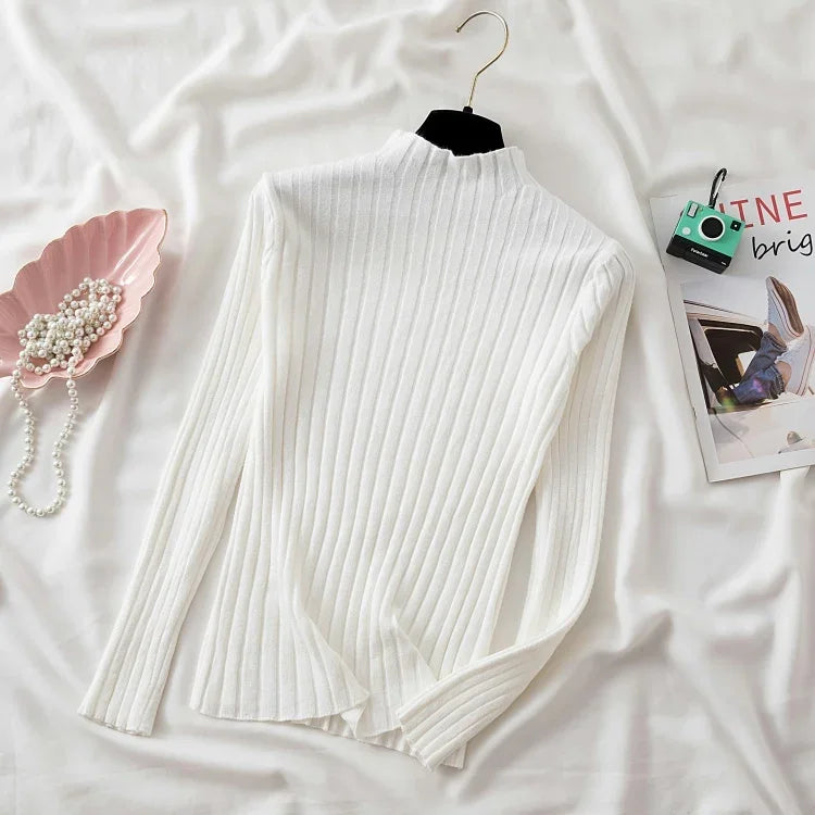 2025 Women Pullover Knitted Sweater Autumn Winter Pullovers Turtleneck Long Sleeve Slim Basic Solid Female Sweaters Tops