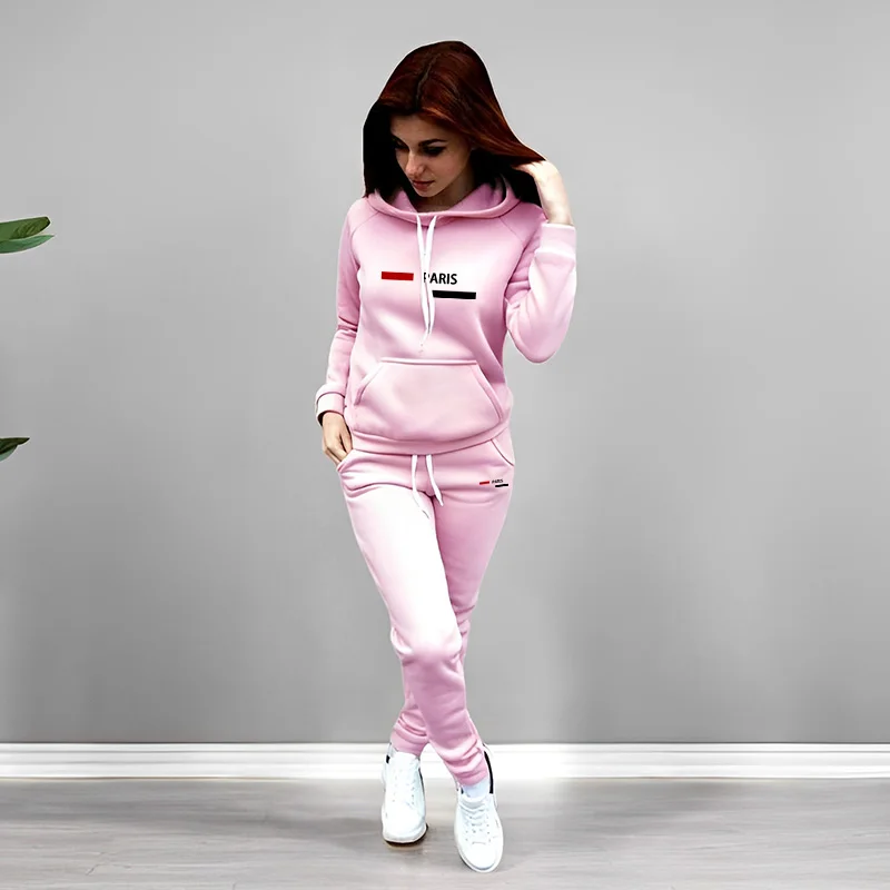 Autumn Winter Casual Outfit Paris Fashion Hoodies Sweatpants 2 Piece Set Women's Tracksuit High Quality Solid Color Jogging Suit