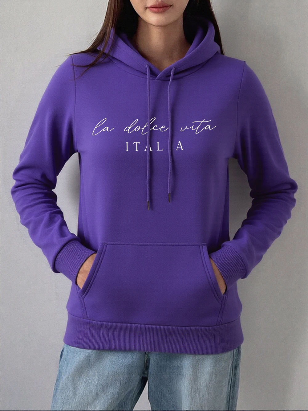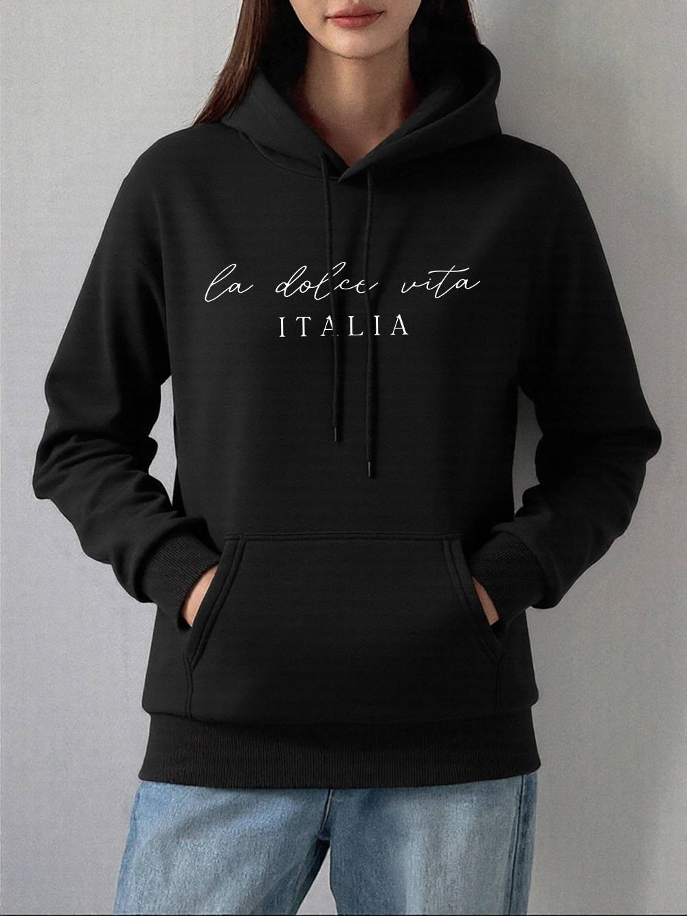 La Dolce Vita Italia Printing Hoodies Womens Basics Sporty Sweatshirts Fleece Warm Soft Pullovers Casual Pocket Womans Clothes