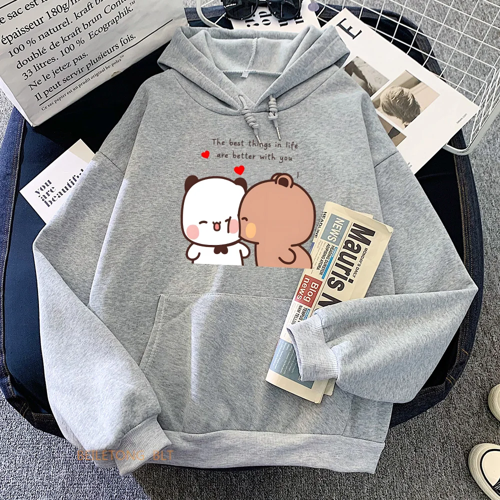 Panda Bear Bubu Dudu Love Heart Kangaroo Pocket Sweatshirts Women Clothing Casual Printing Pullovers Winter Aesthetic Clothes