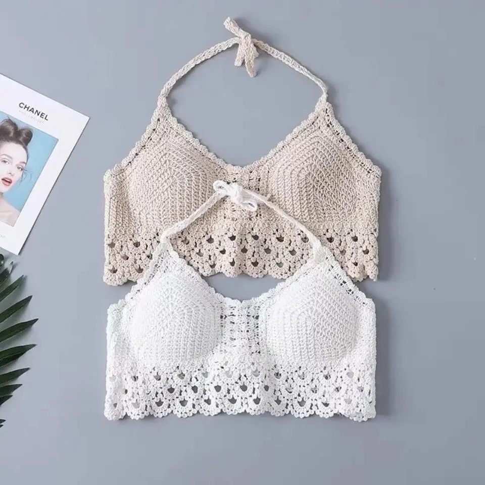 Sexy Boho Beach Holiday Camisole Halter Women Crochet Knit Swimsuit Bra Backless Vest Hollow Tassel Tank Top Women's Crop Tops