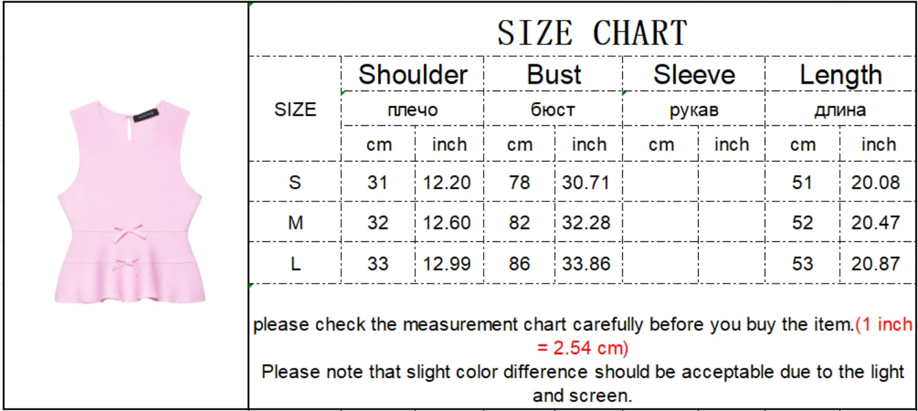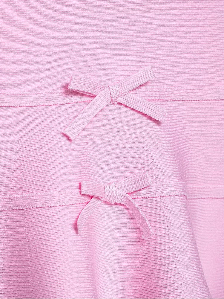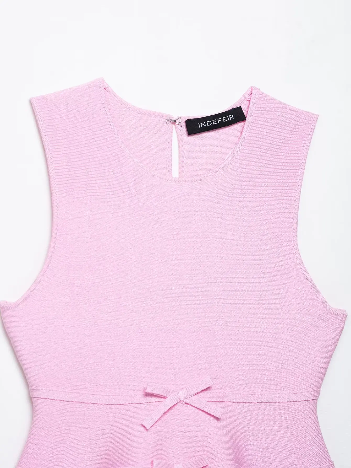 TFMLN Women French-style Bow Knit Top Round-neck Sleeveless Summer Fashion Slim-fit Elegant A Line Hem Lady Pink Tank Top