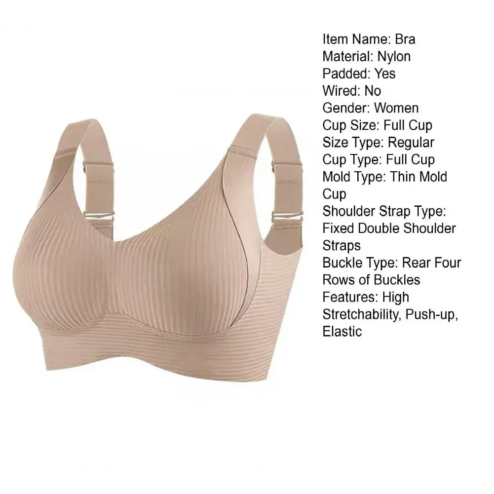 Wireless Push-Up Bra Natural Lift Seamless Vest Type High Stretchability Straps Wire-Free Full Coverage Bra All-Day Support Bra Yoga Underwear