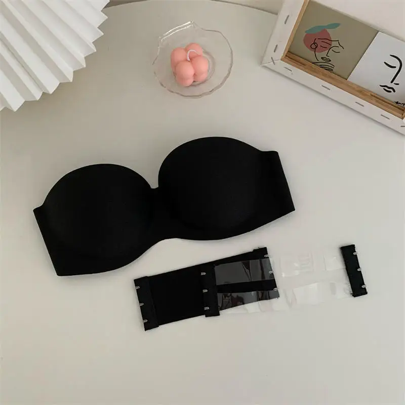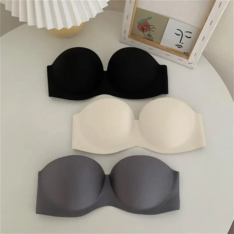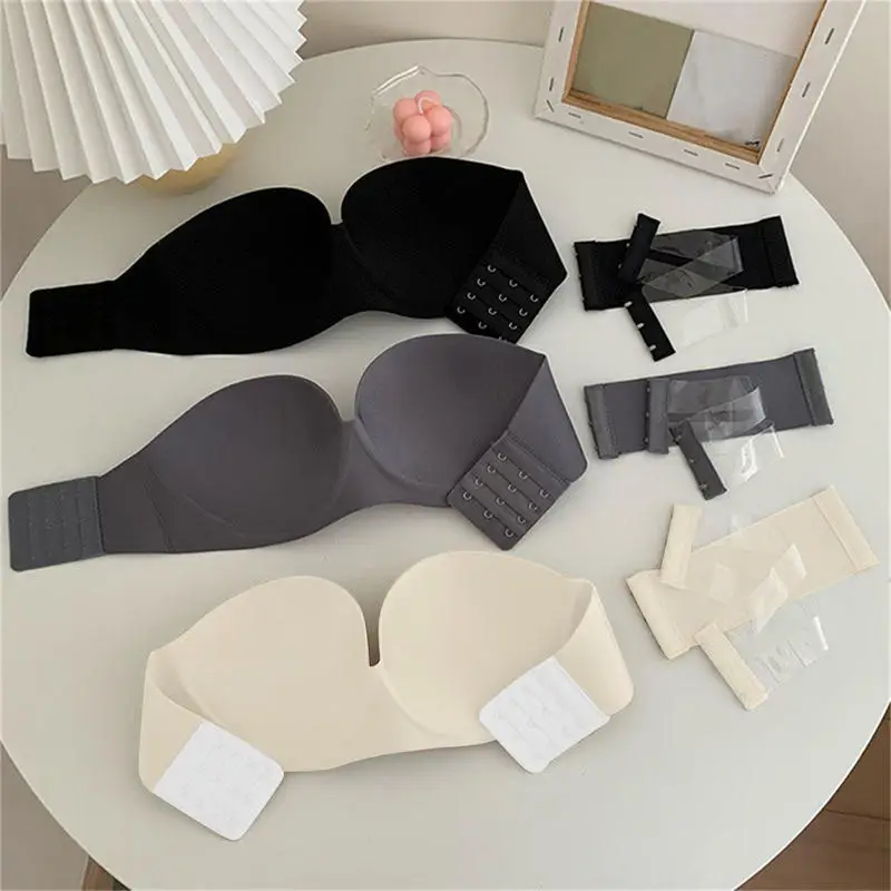 Women Sexy Strapless Anti-Slip Bra Solid Color Invisible Push-Up Comfortable Bra Adjustable Elastic Strapless Bra Underwear