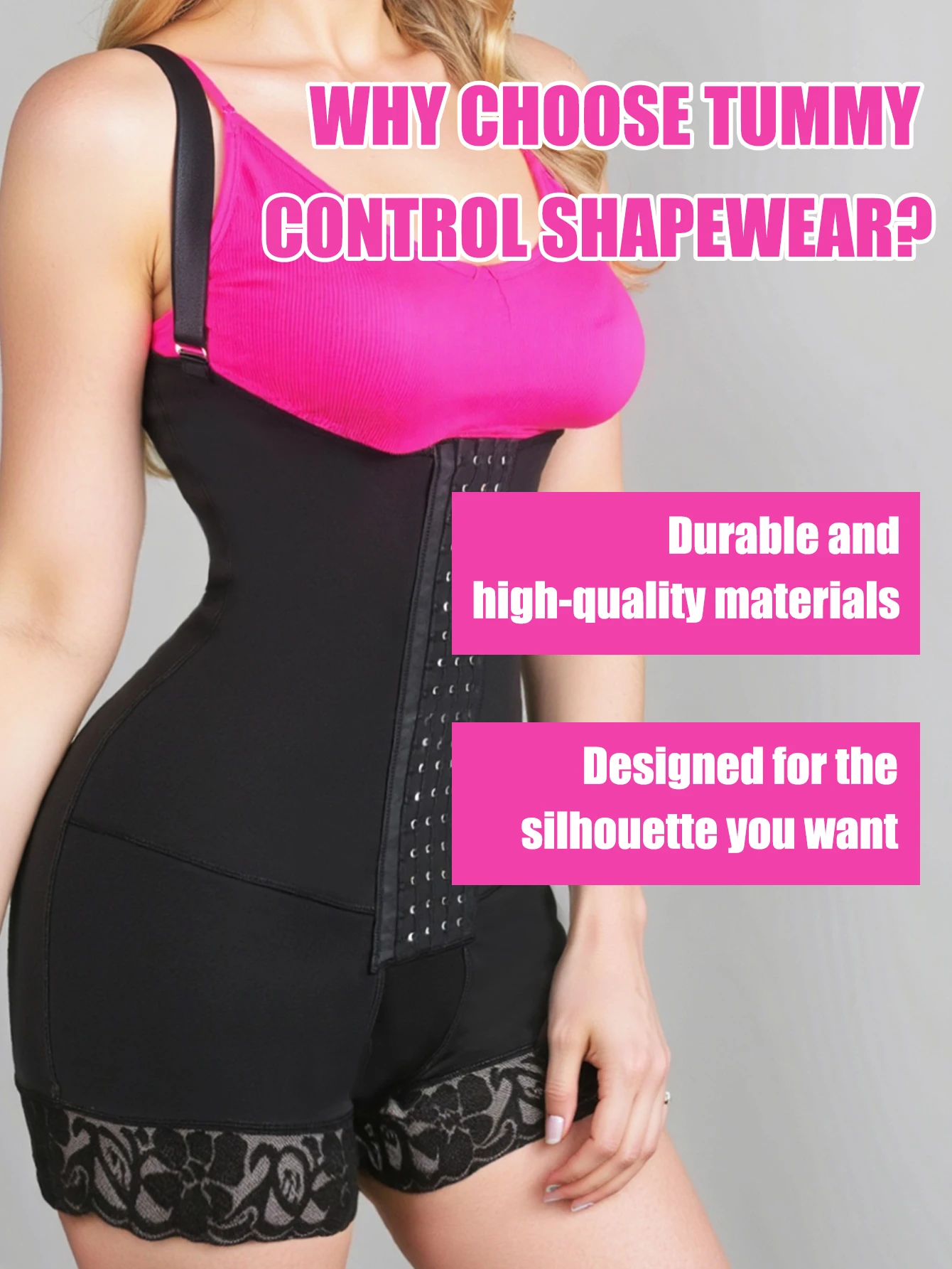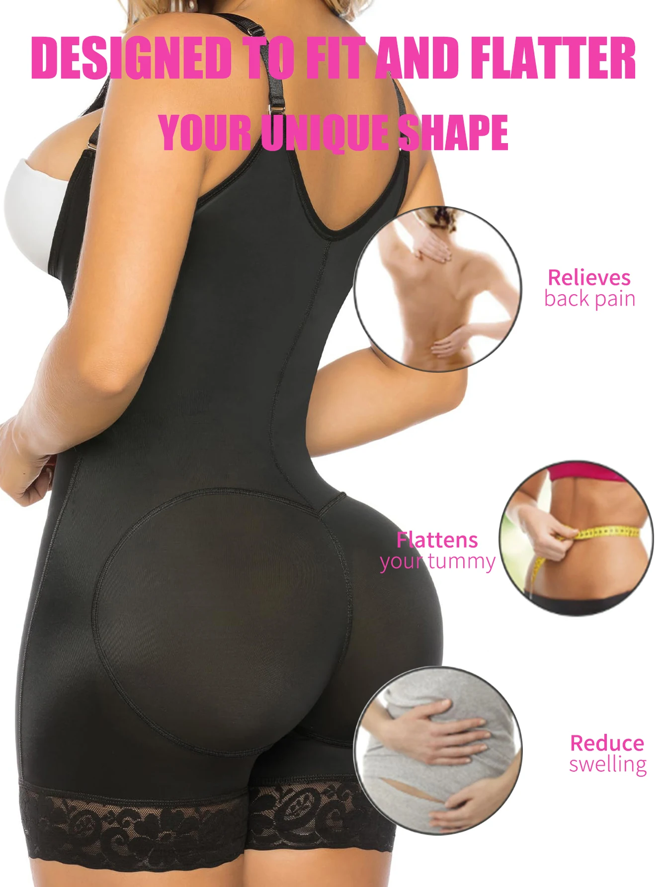 Say goodbye to bulges with our tummy control feature, sculpting a flatter abdomen for a more refined figure.