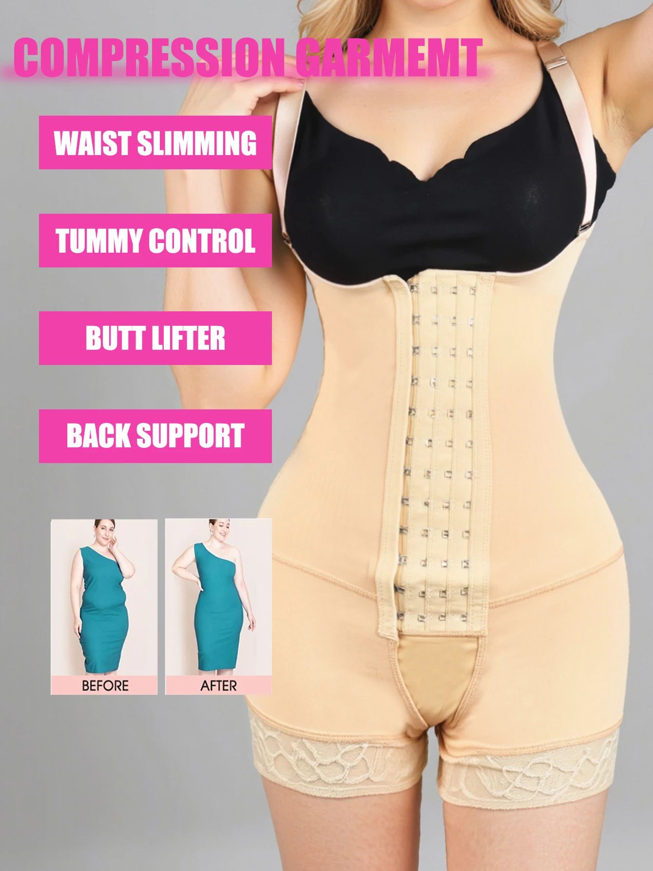 Ideal for post-surgery recovery, this body shaper provides gentle yet effective support to aid in healing and contouring.