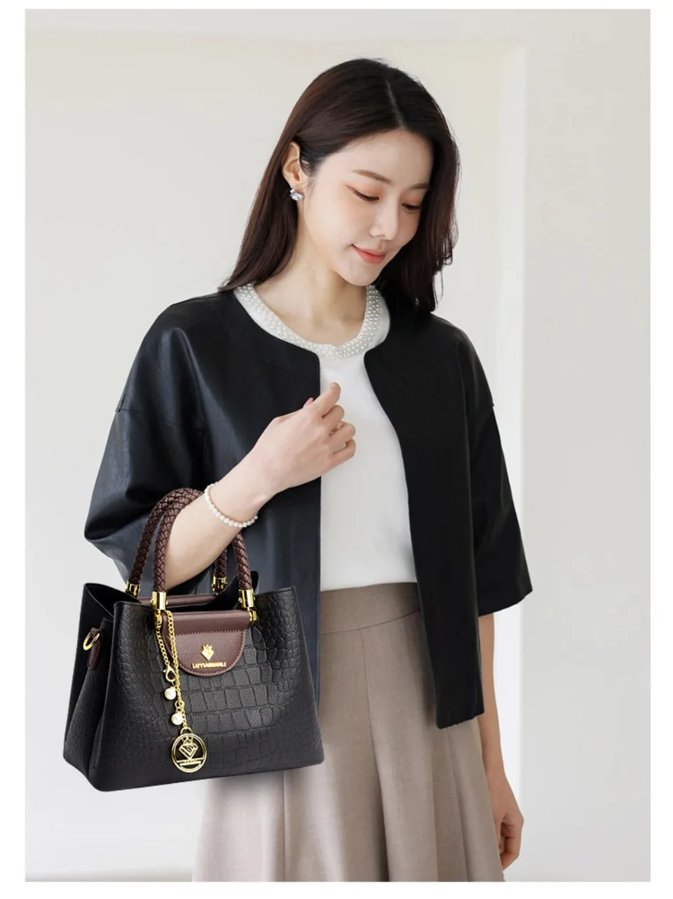 Woven Handle Genuine Brand High Quality Leather Casual Tote Luxury Handbags Women Bags Designer Shoulder Hand Bags for Women Sac